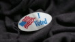 I Voted sticker on a wrinkled shirt