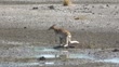 Female Agile Wallaby with young joey drinking at a lagoon in far north Queensland.