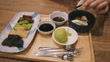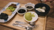 Warabi mochi and tofu matcha ice cream japanese dessert in japanese cafe - 4K stock video