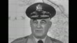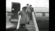 Title: "Washington -- Gen. Twining Leaves for Moscow Air Show" superimposed over United States Air Force plane / VS General Nathan Twining, U.S. Air Force chief of staff, standing at microphones for press conference with large world map in bkgd / SOT Twining: "The group of Air Force officers and myself are going over there with an open mind. We're going to see and we're going to listen and when we come back report to the president and to my peers in the Pentagon building and after that to the American people on what we saw and heard" / MS Twining and others crossing tarmac in rain / MS Twining waves from plane steps