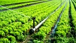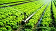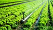Watering Fresh Lettuce, agriculture field of green salad filmed in full HD with tripod
