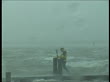 Waves crash over jetty as storm chaser struggles to measure wind speed, Hurricane Frances, Fort Pierce, Florida; 4 Sep 2004