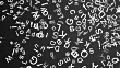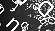 White alphabet letters fall on a black surface.