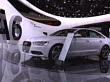 WS white Audi A6 sedan revolving on turntable next to giant wall sign / WS front quarter passenger side view of red A6 / WS Audi display; silhouetted people walk in front of the display; (Footage is 16x9 anamorphic SD and will play back at 853x480) 2011 Audi A6 montage at Cobo Hall on January 19, 2011 in Detroit, Michigan (Footage by Getty Images)