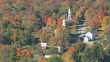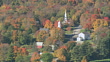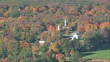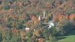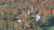 AERIAL White church steeple and small town amid fall foliage / Amherst, Massachusetts, United States - HD stock video