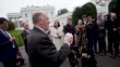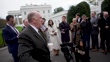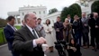 WASHINGTON, DC - NOVEMBER 14: White House Border Czar Tom Homan stops to speaks to reporters as photographers look on following a video interview on the North Lawn outside of the White House on November 14, 2025 in Washington, DC. Homan has been accused of taking a $50,000 bribe from undercover FBI agents. (Footage by Andrew Harnik/Getty Images)