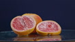 Whole and Sliced Grapefruit Rotating on a Reflective Surface and Blue Background - Fresh Fruit Close-Up - Stock Video - 4K stock video