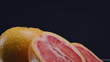 Whole and Sliced Grapefruit Rotating on a Reflective Surface and Blue Background - Fresh Fruit Close-Up - Stock Video - 4K stock video