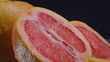 Whole and Sliced Grapefruit Rotating on a Reflective Surface and Blue Background - Fresh Fruit Close-Up - Stock Video - 4K stock video