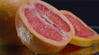 Whole and Sliced Grapefruit Rotating on a Reflective Surface and Blue Background - Fresh Fruit Close-Up - Stock Video - 4K stock video