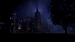 WIDE ANGLE OF A LARGE BRICK BUILDING AT NIGHT IN THE RAIN. COULD BE A UNIVERSITY OR COLLEGE CAMPUS. LOOKS LIKE A HAUNTED HOUSE OR MANSION IN A STORM. A LARGE TOWER CAN BE SEEN IN THE MIDDLE OF THE BUILDING. COULD BE A PRIVATE SCHOOL. FOG MOVES THROUGH