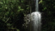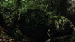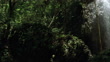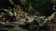 WIDE ANGLE OF BROOK IN WOODS OR MOUNTAIN FOREST WITH ROCKS. PAN UP TO SMALL WATERFALL. RUSHING WATER THROUGH TREES AND VINES. PAN DOWN AGAIN TO BROOK. LEAVES, SYLVAN GLADE WITH CREEK. COULD BE RAINFOREST OR TROPICAL SETTING. JUNGLE.