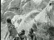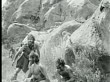 1914 B/W Wide shot Cavemen running out from behind rocks - stock video