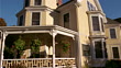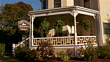 Wide shot exterior of house / pan to porch with bed and breakfast sign - HD stock video