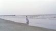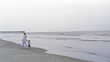 Wide shot mother and son walking on beach/ Charleston, South Carolina - HD stock video