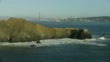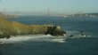 Wide shot of the Golden Gate Bridge and the Point Bonita Lighthouse - 4K stock video