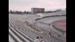 Wide shot of the Olympic Stadium, people entering the Olympic stadium, Estadio OlÃmpico Universitario, University Olympic Stadium, Mexico City, Mexico; 1968 (BBC News - 285/68/02 - 11/10/1968 - AEXZ288W).