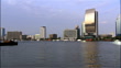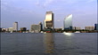 Wide shot pan Sunlight reflecting on Dubai Creek from National Bank of Dubai Building/ Dubai, United Arab Emirates - HD stock video