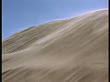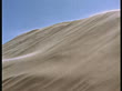 Wide shot sandstorm in desert w/blue sky in background - stock video