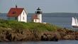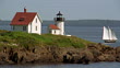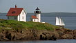 Wide shot schooner sailing past Curtis Island Lighthouse / Camden Harbor, Maine - HD stock video