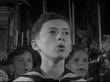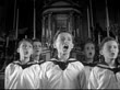 MOT 1952: ALLIED-OCCUPIED VIENNA: VS Wiener Saengerknaben (Vienna Boys Choir)in semicircle in front of alter singing 'Ascendit Deus' by Jacobus Gallus. VS Boys singing. (Sound bridge CHURCH BELLS) HA XWS Stephansdom (St. Stevens Cathedral). HBO Holds no Rights to music performance. Cultural, historic, famous, religion, religious, Catholic, Christian.