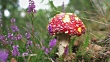 Wild red and white toadstool mushroom growing in a forest in Sweden. Shot in 4K resolution.
