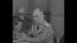 MS (L to R) William Loren Batt, vice chairman of the War Production Board; James V. Forrestal, under secretary of the navy; Elmer Davis, director of Office of War Information; Adm. William D. Leahy, chief of staff; and Robert P. Patterson, under secretary of war, sitting at small table looking at documents; all turn toward camera / MCU Leahy speaking into microphone SOT "The picture is grim today but I can remember a time when it was grim in 1918. That spring we were sure the Germans would break through. Faint-hearted people said they could never be stopped. But they were stopped. This war will probably be long. It will be the toughest, hardest, most merciless war we have ever fought. It calls for the united power of every American in uniform and out of uniform, on the firing line and on the production line. We have mighty enemies but we can beat them. We did it once. We will do it again." / MCU Forrestal at table speaking into microphone SOT "The army and navy are in the forefront of this war but they can be effective only if back of them is the organized will and the industrial might of the nation. At Midway we asked for strength and courage to meet tasks beyond human limitations. They were freely given. We are now asking that you men in the mines of Michigan and Minnesota, the forests of the Northwest, the smelters of Arizona, New Mexico, and Nevada, all of you Americans everywhere, both labor and management will give us our critically needed basic materials; draw upon your reserves of strength for the same extra effort. We ask you to meet the flaming spirit of those pilots both Army and Navy who dove through a curtain of death into the Japanese fleet off Midway and sent it reeling back to its bases." / Note: exact month/day not known