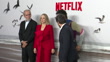 MADRID, SPAIN - OCTOBER 15: (L-R) Willy Toledo, Pilar Castro, Javier Rey and Oriol Paulo attend 'La Última Noche En Tremor' premiere at Real Teatro de Retiro on October 15, 2024 in Madrid, Spain. (Footage by Europa Press via Getty Images)