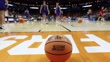 DES MOINES, IOWA - MARCH 15: A Wilson basketball sits on the court as the Kansas Jayhawks practice ahead of the NCAA Men's Basketball Tournament first round at Wells Fargo Arena on March 15, 2023 in Des Moines, Iowa. (Footage by Michael Reaves/Getty Images)