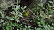 A Wilson's warbler (Cardellina pusilla) hops across the forest floor before flying off. - HD stock video