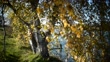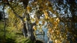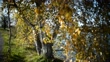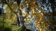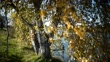 Wind blowing during autumn on a tree with yellowing leaves by a small river at the Steveston Bay area, Vancouver, British Columbia, Canada