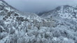 Germany - February 21, 2023: A winter snow scene of Neuschwanstein Castle filmed by a contributor's drone while traveling.