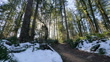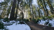 Winter riding in the forest with recent snowfall visible off trail. Riding mountain bikes is a year round sport in the Seattle Washington State area. This was at a park in the Issaquah Highlands called Soaring Eagle.