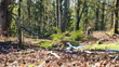 Winter riding in the forest with recent snowfall visible off trail. Riding mountain bikes is a year round sport in the Seattle Washington State area. This was at a park in the Issaquah Highlands called Soaring Eagle.