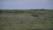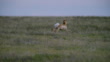 PAN with Coyote trotting through long grass then chased away by a Pronghorn Antelope - 4K stock video