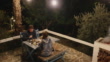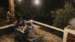 4k video footage of a young couple with their dog - pug breed enjoying a twilight time relaxing at the patio eating burgers from the open fire grill