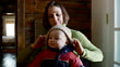 MS Woman dresses baby in winter jacket / Stowe, Vermont, United States - HD stock video