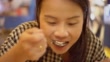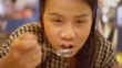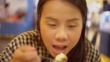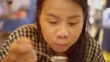 Woman eating a pancake. - 4K stock video