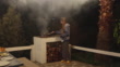 Woman enjoying barbecue picnic with burgers at the home terrace - 4K stock video