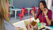 Woman Enjoys Chimichanga While Having Lunch with Friend - 4K stock video