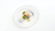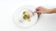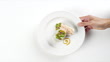 CU Woman hand entering setting down round white plate with spring roll / Omaha, Nebraska, United States - HD stock video