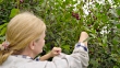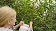 Woman Harvests Trees Shadberry. - 4K stock video