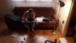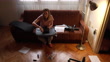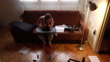 Independent young modern woman in her cozy home, assembling the chair she ordered while using the work tools and manual instruction