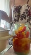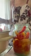 Woman in White Floral Dress Preserving Bell Peppers in Glass Jar at Kitchen Stove - 4K stock video