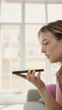 Woman interacting with virtual assistant - 4K stock video