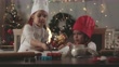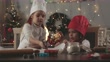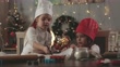 Woman letting her two little daughters cut out parchment paper while baking - 4K stock video