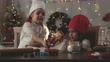 Caring mother letting her two cute little daughters cut out parchment paper while sitting at the table and starting to make Christmas cookies together.
