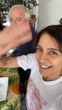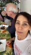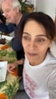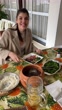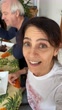 Woman on a video call at family lunch time - pov of mobile phone - 4K stock video