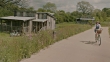 WS TS Woman riding bicycle in countryside / Great Tew, Chipping Norton, UK