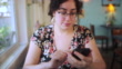 Woman Scrolling through a online Menu at a brunch RestaurantMexican Ethnicity